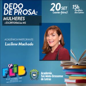 No dia 20 (sábado), às 15h, será realizado o “Dedo de Prosa – Mulheres: escritoras de MS”, com a participação de Lucilene Machado. O bate-papo destacará a produção literária feminina no estado, suas vozes, narrativas e contribuições para a cultura sul-mato-grossense.