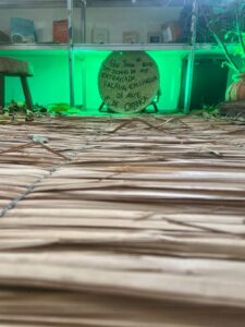 Num espaço aconchegante e que em muito lembra a sede oficial da Casa Quintal Manoel de Barros, õ espaço é um convite ao visitante para uma viagem ao mundo do pensamento e seus desdobramentos na obra do poeta e em especial no universo da Casa-Quintal.