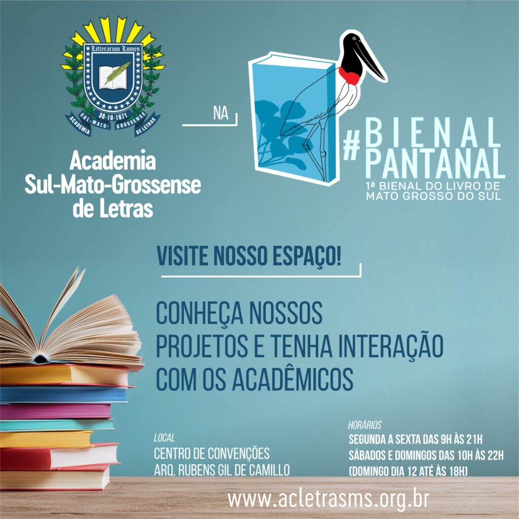 Realização especial do Leituras & Conversas, presença de acadêmicos na interação com o público e em várias programações: estas são algumas das atividades que a Academia Sul-Mato-Grossense de Letras estará promovendo durante a 1ª Bienal do Livro de Mato Grosso do Sul – Bienal Pantanal, com mais de uma dezena de imortais envolvidos com as […]