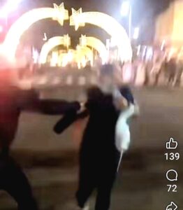Também foi filmado o momento em que um grupo de guardas avança sobre a cerca de contenção, derrubando-as e partindo com tudo contra os manifestantes, muito deles idosos, num ato considerado pelos presentes como “covarde”, “empregando força exagerada”.
